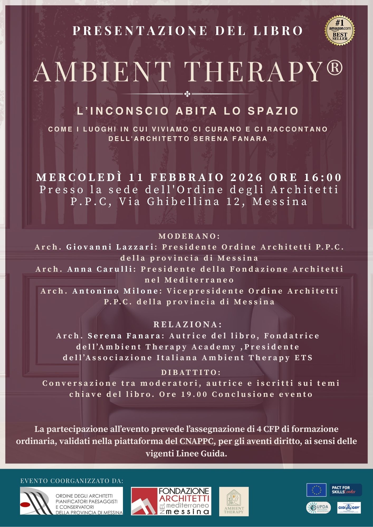 Ambient Therapy® – L’inconscio abita lo spazio, recentemente diventato best seller nazionale su Amazon nelle categorie Architettura, Psicologia e Crescita personale, propone una visione innovativa dell’abitare, fondata sull’integrazione tra architettura, neuroscienze, psicologia ambientale e dialogo con l’inconscio.